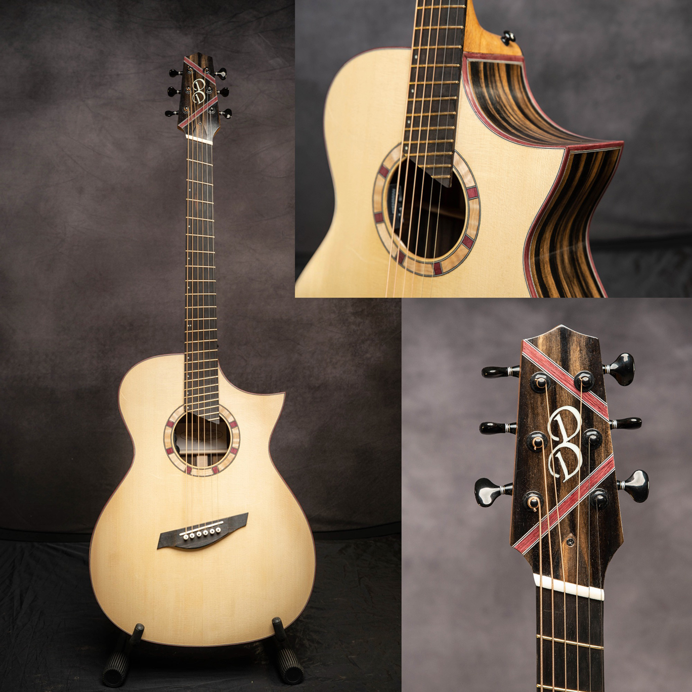 A decade later, in 2013, I finally worked up the courage to build my first guitar. I ended up playing that one for a while until I built another, and it sounded and played better. Now with over 20 guitars now under my belt, I realize that experience is a marvelous teacher! I also need to give a shout out to Robbie O’Brien at O’Brien Guitars, who has become a primary mentor for me in building. How fortunate that he lives just 20 minutes away from me.